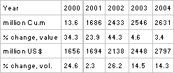 2002. In 2004 imports grew by 3.1%(volume) and 14.3% (value) over 2003.
