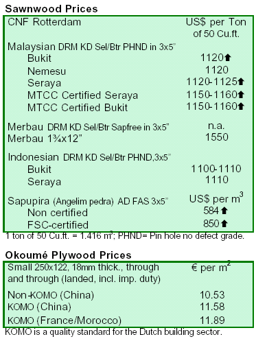 Dutch traders are not placing fresh orders for iroko despite attractive prices. When the CNF Rotterdam