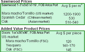 with Peruvian products, the former are more readily available since they come from plantations. Chilean products are also more price competitive than tropical timber products.
