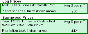 According to ¡°Gremial Forestal¡±, the average FOB prices for teak logs and sawnwood have increased about 8% over the last 8 years.