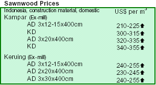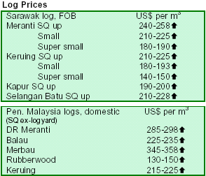 Prices for all timber products, from logs to added-value products, surged in late January due to reduced supply of these products as Southeast Asia breaks for lunar New-Year holidays. Furthermore, monsoon rains continued to affect logging and sawmilling operations in the major production areas.
