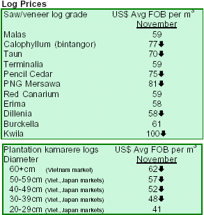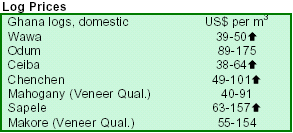 Log prices remained firm and producers were confident of a rising trend thr ough the first quarter of 2006. Sapele prices held onto the recent higher level and producers forecast further price increases as soon as European buyers return to the market looking for spring and summer stocks.