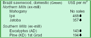 Domestic prices of solid wood products remained stable in real terms, but declined almost 5% in dollar terms due mostly to the appreciation of the Brazilian currency with respect to the US dollar.