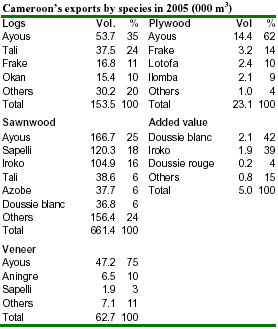 Cameroon¡¯s main timber export product with exports of 661,394 m3 in 2005, down 3% from