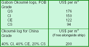 In Gabon SNBG appears to have continued the monopoly on okume sales and prices and, as a