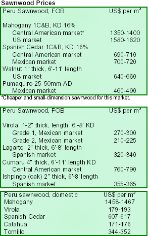 Preliminary statistics show that Peruvian exports of timber and timber products reached $169 million in 2005, up 24% from 2004 but below the projected $180 million. Analysts name two main factors that prevented greater exports. Firstly, the financial problems faced by 90% of the forest concessions (see MIS Report 10/20). Secondly, the ongoing crackdown on illegal logging that has reduced the availability of raw material.
