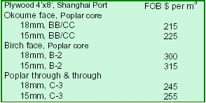 African logs lead imports in Zhangjiagang Port Taiwan¡¯s Samson Group expands in China According to a local furniture association, most manufacturers, especially panel furniture firms, have not raised furniture prices due to strong domestic competition. Only few furniture firms have adjusted the prices of their products. For example, the average price of redwood furniture had risen 30%. Analysts indicate that some of the firms producing branded furniture would increase furniture prices if raw material costs continue to rise. Shanghai Furen Wholesale Market