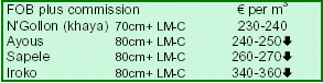 Merbau purchases by Dutch importers slid as stocks rose after steady buying at increasing prices CNF Rotterdam. Merbau¡¯s sales triggered when iroko was only available in small volumes at high prices. The available volumes of merbau were dosed and spread over a long period, avoiding the market getting rapidly saturated. Since the supply situation of iroko