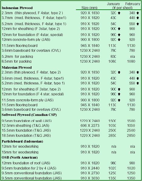 Price negotiations on imported tropical logs between importers and domestic plywood mills failed in January and were carried over again to early February. There remained gaps between asked and offered prices.