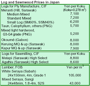 Plywood imports fell 7.5% to 4.57 million m3 in 2005, due to serious log shortages in Indonesia and the ongoing crackdown on illegal log harvest. Malaysia was the