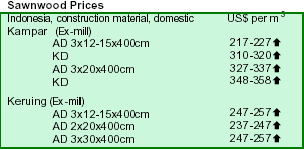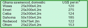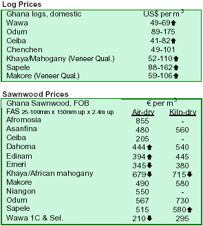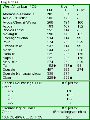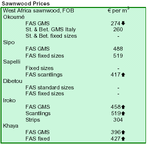 previous years. The recovery in sapele sawnwood prices gained momentum with a further rise of .20 per m3.