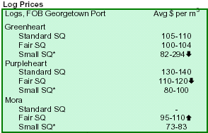 Log export prices remained largely unchanged in the first half of March. Trade continues to be brisk and prices are