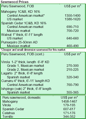 Sawmills in some timber producing zones are considering to raise prices of wood products in view of higher fuel costs and growing demand for some tropical timber species such as cumaru (Coumaruna odorata), masaranduba (Manilkara bidentata) and tornillo (Cedrelinga catenaeformis).