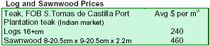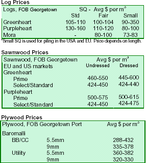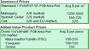 prices had increased by 4.7% in the first quarter of 2006,pushing up energy costs as electricity is generated by diesel engines. Some producers anticipate that timber prices could increase by up to 35% at sawmill yards. Current board feet prices are at $0.60 for tornillo and $0.48 for cumaru and masaranduba.