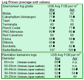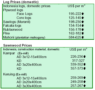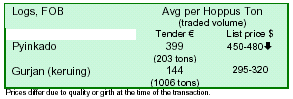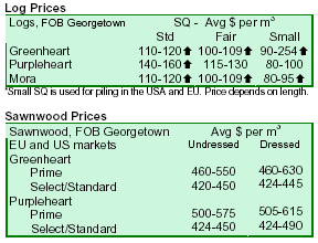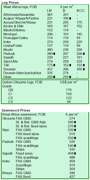 increases were seen in selected species such as sapele GMS (up euro31), padouk GMS (up
