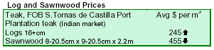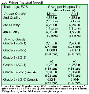 first four months of 2006, 6,100 m3 of teak were harvested while 53% of the production was exported.
