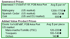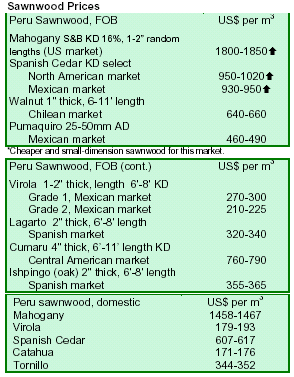 certificates for mahogany product exports by INRENA is putting added pressure on prices. INRENA is currently