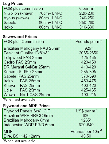 (sipo/utile, sapele). The greater focus on sapele is moving prices up both free delivered and CNF Dutch port,