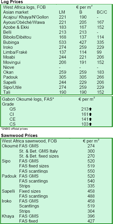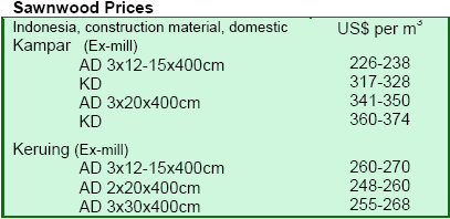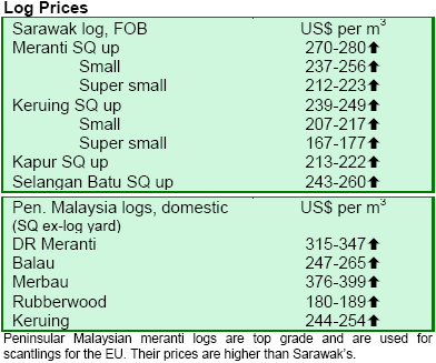 over-capacity detrimental to the industry. Overall, prices for most Malaysian timber products remain steady.
