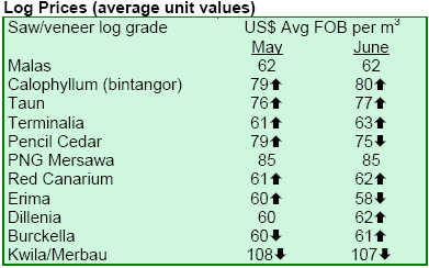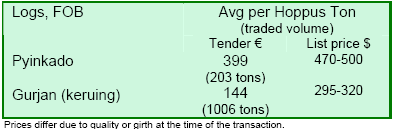 to purchase beyond the readily available volumes of the more valued species. The firm price trend is reinforced