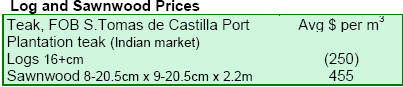 The volume of teak contracts approved (notably for the Indian market) declined drastically from 21,850 m3 to