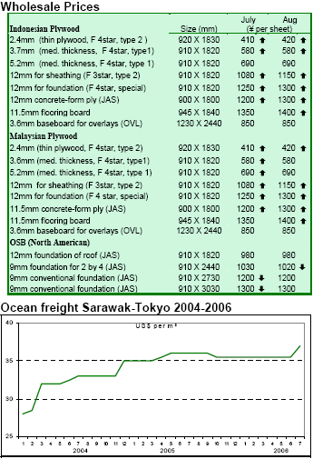 Mr. Kawamura said Indonesia was expected to manufacture 2-2.5 million m³ of plywood in 2006 (down