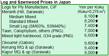 supply. Overall supply of these important plywood products was tight in Japan as manufacturer’s inventories