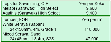 Japan from Indonesia), matching the nominal price levels of mid-1993 when Sabah imposed a log export ban,