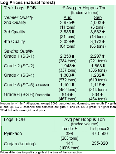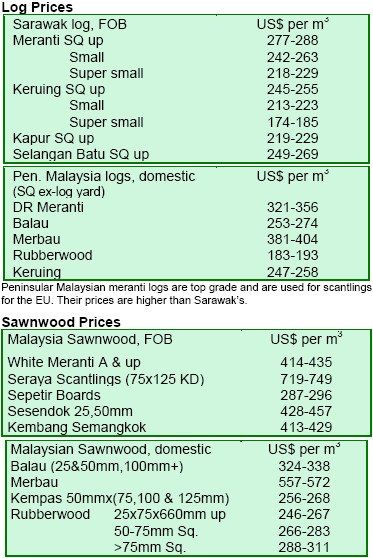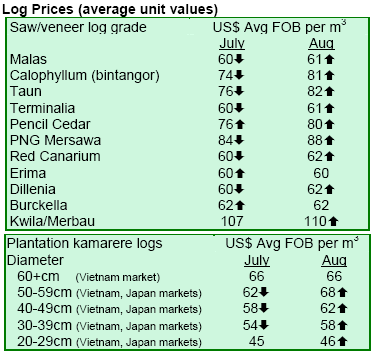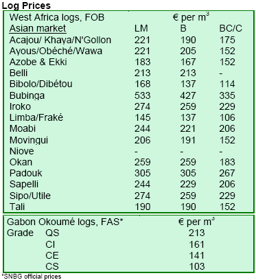 prices might reflect back on log prices in due time. It was not clear whether sapele prices had reached a plateau.