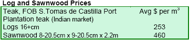 Exports of teak sawnwood were only $15,650 in March but had almost doubled to $28,453 in September 2006.