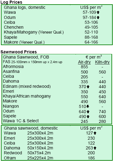 There were interesting developments in the prices of Ghanaian wood products, especially for panel products in