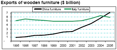 domestic consumption. From 1995 to 2005, the total value of wooden furniture exports rose