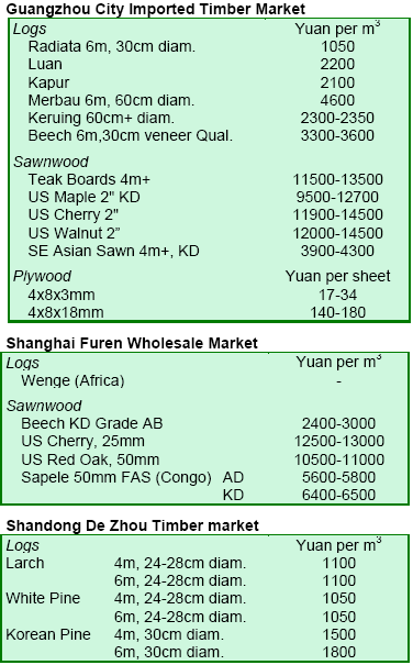 pine plywood (see Report from Brazil). Chinese suppliers had been forced to lower slightly