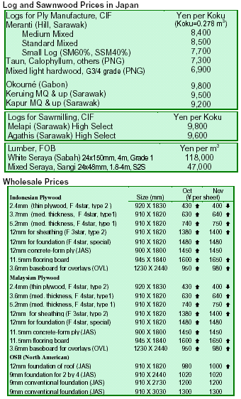 Prices for Southeast Asian panel seemed to be peaking in late November. According to some Japanese traders, some