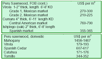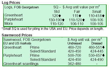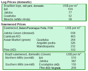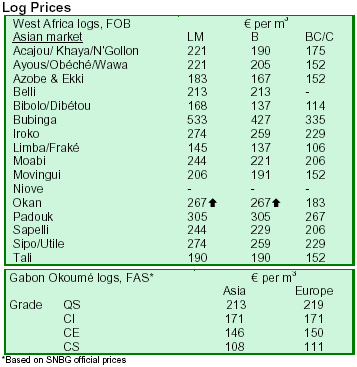 supply. China and India are active log buyers. Although rains persist in some areas, the short dry season is