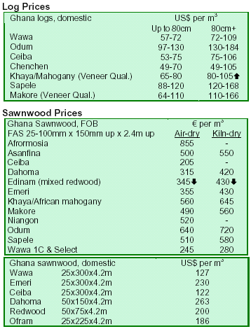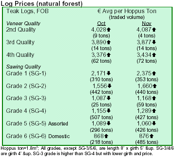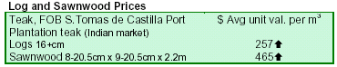 The export market for sawn teak and other secondary processed wood products remained weak. Although orders