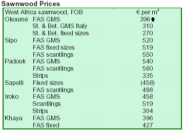 South Africa is a consistent and steady buyer of okoume lumber in merchantable grade, which produces a