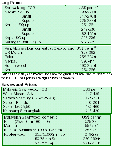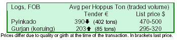 less attractive. In contrast, the market for gurjan (keruing) logs was reported as good. Previously unsold stocks have