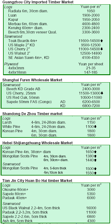 such as teak, padauk and ald birch, and a cross-border trade blockage with that country since March 2006. Prices