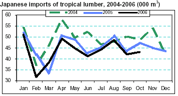 Tropical log exports to Japan were anticipated to decrease toward the end of 2006 and early 2007 due to reduced