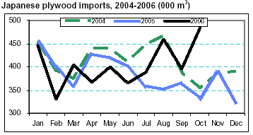 imports were 4.6% above the pace in 2005. However, domestic plywood prices in Japan weakened slightly in