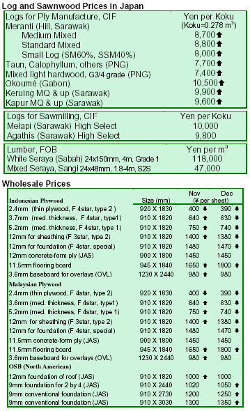 Japanese plywood imports. Domestic plywood supply rose to 287,000 m3, the second highest level in the year, while