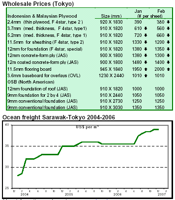 plywood prices are weakening in Japan. Japanese plywood mills are caught in
