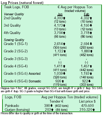 Prices for Indonesian timber products resumed their upward trend, rising across the board in early March. The
