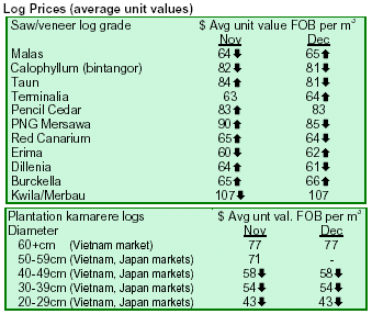 remained buoyant as demand from Japan was steady. Sawntimber prices were picking up steadily as orders from