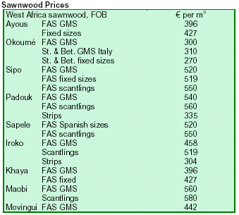 Prices for West and Central African primary timber products remained largely unchanged in early March. The
