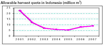 Indonesia's Minister of Forestry announced that the harvest quota for natural timber for 2007 would be