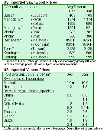 value of US hardwood imports as sawn lumber. Veneer shipments increased almost 15% and accounted for 9.6%