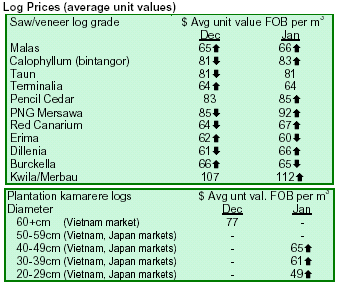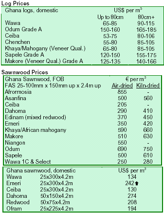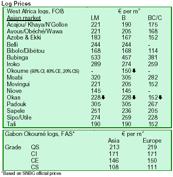 prices for okoume and okan for Europe have remained