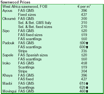 Prices for moabi, movingui and padouk sawnwood held